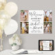 Dê as boas-vindas aos convidados a uma celebração elegante de chá de panela com um cartaz personalizado de colagem de 4 fotos 18"x24". As imagens e todo o texto são simples de personalizar. O tema da festa "brunch & bubbly" pode ser facilmente excluído ou alterado para outra ideia, como paraíso no quintal, chá de jardim, boêmio francês, senhorita para senhora, romance em Paris, etc. O design moderno minimalista preto e branco apresenta quatro imagens de sua escolha, caligrafia estilosa manuscrita e tipografia vintage elegante. Este sinal de boas-vindas para chá de casamento é uma maneira elegante de compartilhar fotos do noivado como parte das decorações da celebração do seu dia especial. Parabéns à noiva!