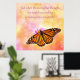 Logo quando a lagarta pensava que o mundo estava acabando, ele se transformou em uma borboleta - A borboleta monarca em zinnia rosa com um fundo amarelo e rosa sonhador, com a citação