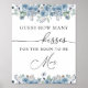 Adivinhe quantos beijos para o sinal da futura Sra. com uma borda de flores azuis. Coleção correspondente na loja Zazzle da Adore Paper Co.