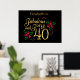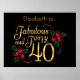 Quarenta e fabulosa, Dourada e negra, com poster de aniversário de mulheres Rosas vermelhas. Adicione o nome do destinatário para torná-lo pessoal. Uma adição de excelente à festa de aniversário!