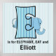 Pôster Quarto de Bebê E Elefante Azul Monogramado