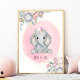 Poster Quarto de Bebê Menina Floral Rosa Aquarela Elefant