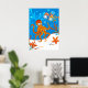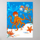 Uma ilustração aquática gráfica de um polvo fofo e uma estrela-do-mar engraçada em um pôster. ©2013charmainepaulson