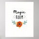 Decore o berçário do seu pequeno(a) com este adorável pôster de quarto mágico moderno escandinavo com flores. © Julie McIver