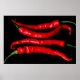 Quatro Red Chilies - Quatro pimentões verdes e horizontais de cayenne chili fotografados em um simples fundo preto. © Alan Harman Fotografia 2012. Todos os direitos reservados. www.alanharmanphotography.com 180518 poster impressão