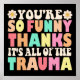 Um retrô sarcástico e engraçado diz design que você é obrigado tão engraçado que é todo o trauma. Incrível roupa de piada sarcástica para sarcasmo e amantes engraçados de piadas, pai, mãe, avô, avó, irmã, irmão, tio, tia, amigo, colega de trabalho... piada de roupa de Groovy para dar como presente no aniversário, dia de os pais, dia de as mães, dia dos pais, dia das mulheres, dia do professor... Excelente como uma cortina de encontro para o exterior, acampamento, esporte, praia, escola, trabalho, reunião, casamento,