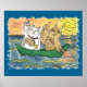 Este gatinho sortudo e seu ouro de sorte Buddha são acompanhados pelo seu amigo, a Coruja Ouro, enquanto eles baratemente cruzam os mares em seu barco verde de ervilha espalhando sorte para longe e para longe. Arte original por Three Cats Graphics.