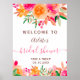 Chá de panela de boas-vindas a cores florais modernas, de cor branca, cor de laranja brilhante, cor de pêssego, cor de rosa e flores verdes, buquê e letra elegante de script.
