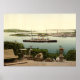 Impressão fotomecânica de Queenstown Harbor em County Cork, Irlanda, que foi tirada no final do século XIX. A fotografia mostra uma visão pitoresca de um barco a vapor entrando no porto. Foto cortesia da Biblioteca do Congresso LC-DIG-ppmsc-09860.