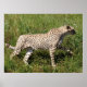 Queijo africano (Acinonyx jubatus) andando sobre a grama visto de perfil