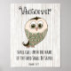 Quem Bíblia Verso com Posters de Coruja. Apresentando a escritura dos romanos 10.13, com fundo de madeira rústica e branca, tipografia negra...e uma adorável coruja verde e castanha laranja no centro. Veja mais nas citações cristãs. Link abaixo: