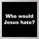 QUEM JESUS ODIARIA? Algumas pessoas alegam basear seu comportamento na pergunta, "O que Jesus faria?" Mas assistir às querelas políticas de hoje e à retórica odiosa entre a direita religiosa e os progressistas implica uma pergunta melhor: "Quem Jesus odiaria?" Esta poster satírica com seu ditado engraçado é mais do que uma poster engraçada porque ela pode fazer pessoas sorrir e pensar ao mesmo tempo. Sim, Virginia, isso é possível. presente de excelente para ativistas, progressistas ou qualquer pessoa que queira acabar com esta loucura e, talvez, gozar com hipócritas.