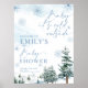 Querida, é o Sinal de Boas-vindas poster Winter Wonderland chá de fraldas com flocos de neve azuis e pinheiros.