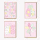 Poster Quilt Art Print Set: Flower on Pink Background