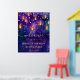 Este elegante design apresenta uma rica mistura de aquarelas de profundos púrpuros e azuis, evocando um céu brilhante e crepúsculo. Suspensos no topo estão as lanternas ouros brilhantes, cada uma pendurada em delicadas cadeias pontilhadas e cercada por pontos de ouro espalhados que acrescentam brilho festivo e calor. Na base, dois vernizes de coração prateado reluzentes ancoram a composição, acrescentando um toque romântico. O olhar geral é perfeito para celebrações de marcos, casamentos, Quinceañeras, ou qualquer evento que exija uma estética mágica e personalizada.