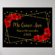 Poster Quinceañera rosa vermelha Preta e Dourada
