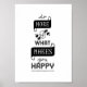 Inspirational poster with the quote: 'Do more of what makes you happy'. With trendy black and white typography.