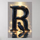 Esta obra de arte da letra "R" brilhante foi projetada para ser calmante, radiante e cheia de um maravilhoso silêncio de livro de histórias. A letra R maiúscula suavemente esculpida brilha por dentro, cercada por um halo quente de luz dourada ambiente e faíscas suaves que cintilam em um fundo escuro e mágico. A luminosidade é equilibrada para apoiar o conforto visual e o enraizamento emocional em qualquer espaço de aprendizado ou habitação.