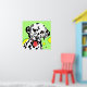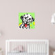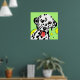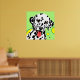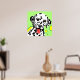 Arte colorida de cão com dálmata branco com manchas pretas contra um fundo verde claro com círculos amarelos
