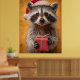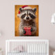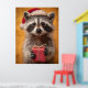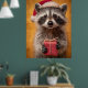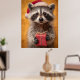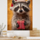 Poster Raccoon Adorável em Santa Chapéu Segurando Present