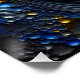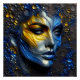 Um retrato especial do rosto de uma senhora bonito com um toque 3D, gravado e texturizado. Cores como azul real e amarelo profundo dão um toque brilhante. O fundo, como um misterioso céu noturno, tem crateras cheias destas cores numa superfície de carvão. Uma obra-prima abstrato.