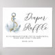 Adicione um sotaque náutico ao seu chá de fraldas com este sinal de mesa de rifa de fralda floral ao seu evento. Apresenta ilustrações em aquarela de peões azuis e brancos e rosas com âncora. Personalize adicionando seus próprios textos.