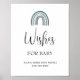 Este charmoso sinal de chá de fraldas apresenta um delicioso tema do arco-íris em matizes macios, perfeito para celebrar seu pequeno milagre. A design inclui gráficos de arco-íris lúdicos com sotaques azuis claros, associados a tipografia moderna e elegante. A frase "Desejos por Bebê" é exibida de forma destacada, fazer que seja fácil para os hóspedes saber onde deixar suas cartas com desejos escritos. Esta placa adiciona um toque alegre e acolhedor à decoração do seu chá de fraldas, misturando-se perfeitamente com celebrações do arco-íris ou do tema do bebê.