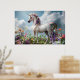 Poster Rainbow Unicorn em Flor Meadow - Fantasy Pastel