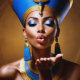 Versão para download. Rainha Nefertiti (c. 1370 - c. 1330 BCE). A Rainha Nefertiti, a Excelente Esposa Real de Faraó Akhenaten, é uma das figuras mais famosas do antigo Egito. Conhecida por sua beleza e posição poderosa, co-governou durante um dos períodos mais ricos da história egípcia e desempenhou um papel na revolução religiosa do país ao promover o culto de Aten, o disco solar. Um retrato estilizado imaginado da Rainha Nefertiti com um pescoço alongado, ossos da face alta e lábios de cheio, exibindo elegância e beleza regais.