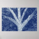 Foto de uma árvore com galhos perfurados com efeito cianotípico.