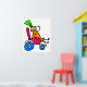Um desenho animado bonito de uma menina feliz e deficiente acenando de sua cadeira de rodas rosa e funfa. Personalize e escolha facilmente a sua própria cor de fundo ou adicione texto. Imagem disponível em vários presentes e produtos.