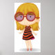 Uma garota com óculos grandes e vestindo um vestido listrado. Esta design parece realmente eficaz nestes Poster