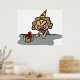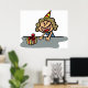 Uma aniversariante vestindo um chapéu de festa e tem um presente. Esta design parece realmente eficaz nestes Poster