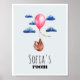 Esta poster de crianças lindas e femininas apresenta uma linda, pintada manualmente com a cor d'água, a preguiça mãe e a criança, flutuando no céu segurando um balão. Esta design também tem um lugar para você adicionar o nome da sua garota. O design perfeito adorável para o quarto do seu filho ou para o berçário do bebê!