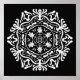 Esta mandala branca senta-se sobre um fundo preto. Parte da coleção Erghen Mandala.