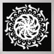 Esta mandala branca senta-se sobre um fundo preto. Parte da coleção Kowas Mandala.