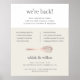 Anuncie sua reabertura à comunidade com este poster elegante que é perfeito para padarias e catadores. Mostre-o numa armação perto da sua entrada ou pendura numa janela ou porta. Design moderno mostra cinzas em um fundo branco e marfim adornado com uma ilustração de uísque em folha de ouro falso rosa. Personalize com seis campos de texto modelo para seu título, texto do corpo, nome da empresa e informações de contato. Perfeito para compartilhar detalhes importantes sobre como você modificou a sua empresa para manter protocolos de distanciamento social e saúde e segurança para proteger clientes e funcionários na era de 19 anos.