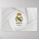 Arte de parede com linhas macia e entrelaçadas que constituem a letra "M" em representação de Madrid, incorporando uma estrela ouro e a crista do clube. O fundo é branco com toques de cinza, dando a ele um olhar refinado e elegante.