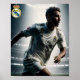 Wall Art & Décor: Uma silhueta dinâmica, em linha de solteiro, de um jogador do Real Madrid no voo de médio