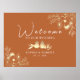 Dê as boas-vindas aos seus convidados com elegância boêmia através do nosso Cartaz de Boas-Vindas de Casamento Terracota Burnt Orange. Apresentando um casal romântico de pássaros amorosos em meio a renda floral dourada, este cartaz exala charme e sofisticação. A caligrafia moderna simples adiciona um toque de romance, definindo o tom para uma celebração memorável. Guie seus convidados com estilo e calor enquanto eles iniciam sua jornada de casamento com este elegante cartaz de boas-vindas.
