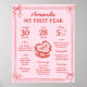 Celebrate your baby girl’s first year with our Red and Pink Bow Cake 1st Birthday Milestone Sign. Featuring a sweet combination of red and pink hues, dainty bows, and a charming cake illustration, this design beautifully highlights your little one’s favorite things, first words, and special milestones. Perfect for displaying at her birthday party, photo area, or as a keepsake, this milestone sign adds a lovely, personalized touch to your girl’s first birthday celebration.