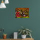 O brilhantismo de um dia ensolarado de outono é celebrado neste belo poster de viagens de fotografia de arte. Aqui está um celeiro de cremson em um vale no fundo de uma colina que é coberto com adoráveis cores de folhagem de vermelho, laranja, amarelo, ouro e verde. A fotografia foi aperfeiçoada para criar um efeito impressionista, artístico.