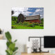 Este celeiro vermelho rústico domina a adorável paisagem de verão. O conselho de celeiro de meteoros adiciona ao encanto deste velho edifício. Um belo jardim florístico com girassóis e zinnias vermelhas decora o gramado verde e pastoso e convida o espectador a sonhar com um tempo mais simples. O céu azul com nuvens brancas e peludas completam o quadro.