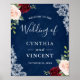 Poster Red Blush Floral Navy Blue Wedding Welcome Sign