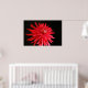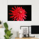 Uma poster de uma linda, muito mesclada, brilhante dália de cacto vermelho em um fundo preto.