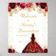 Poster Red Floral Princess Quinceañera Bem-Vindo