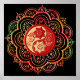 An ornate mandala with floral yin yang pattern, featuring layers of intricate details. The vibrant colors enhance the symmetrical design, adding depth and dimension.