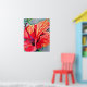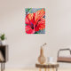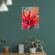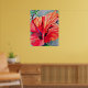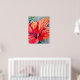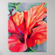 com design de arte original de uma pintura aquosa de flor tropical de hibisco, vermelha e laranja translúcida. Este design floral é um foco próximo, mostrando uma intrincada técnica de pintura a aquarela, mostrando o design brilhante, colorido, inspirado botânico.