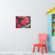 Decorate a living space during the autumn season with this poster print featuring a photographic image of colorful, red Japanese Maple leaves contrasting against a grey, wooden building. A stunning, botanical image! Select your poster size and other options as desired.