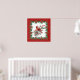 O fundo vermelho e branco que apresenta Poinsettia borda com um sabiá vermelho em um galho com bagas de inverno cria um design único, clássico e eterno!
